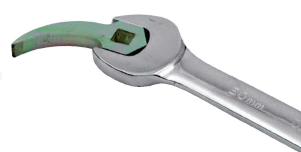 El gancho de palanca UNI “Finger-Mate” es una herramienta profesional especialmente desarrollada para trabajos de palanca precisos en zonas estrechas y de difícil acceso. En combinación con una carraca de accionamiento 1/2" o una llave fija SW 30, esta innovadora herramienta amplía considerablemente las posibilidades de uso del equipamiento existente en el taller.